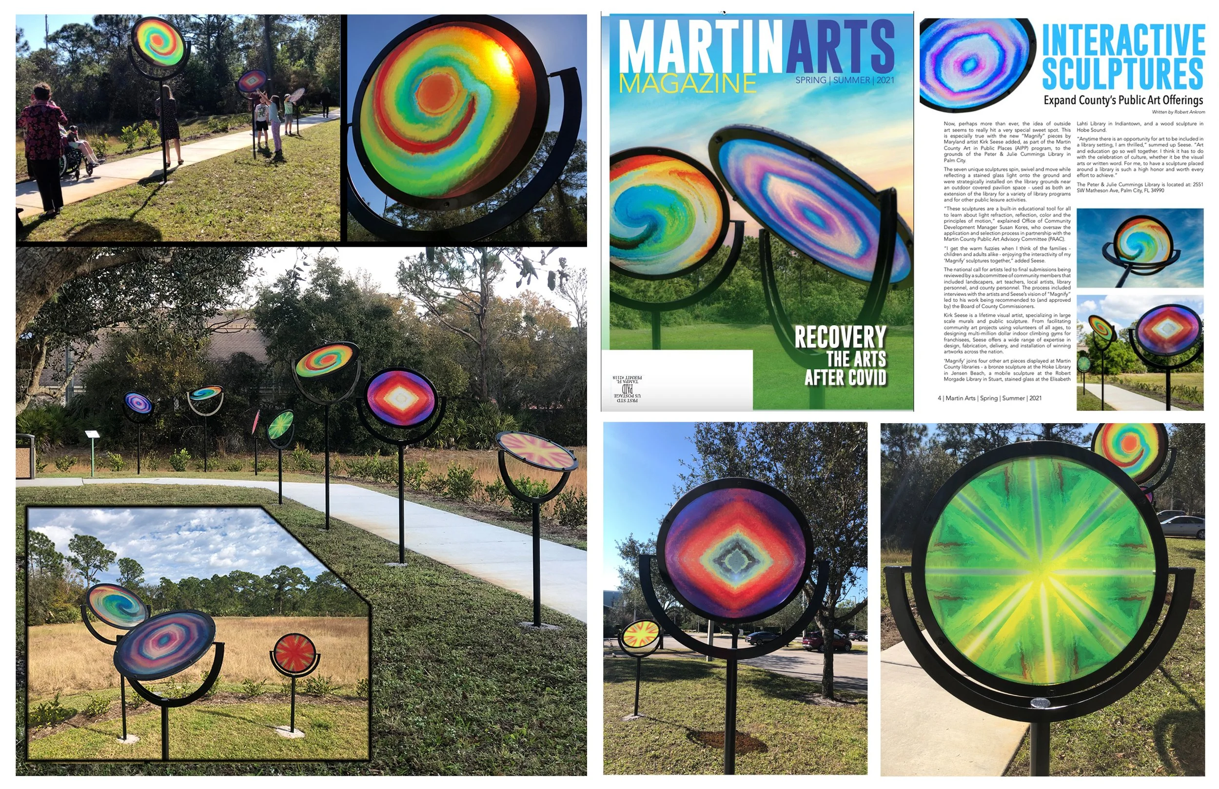 “Magnify”(Kinetic & Interactive)Welded 2” round tubular steel, CNC cut 1/2” Clear Polycarbonate, UV Inks Magnify Seven, Palm City, FL 2021 Magnify, Chicago, IL 2023-2024 Magnify, NC 2023-2024 Magnify, Mankato, MN 2023-2024 Magnify, Marietta, GA 2023-2024 Magnify, Sheridan, WY 2023-2024 Magnify, Sioux Falls, SD 2023-2024 Magnify, Wayne, NE 2023-2024 Magnify, Bellevue, MI 2023-2024